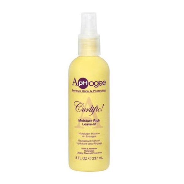 ApHogee Curlific Moisture Rich Leave-In enhances the looks and feel of your hair and helps eliminate styling challenges. Snarls and tangles are a challenge on any head, but textured hair can be the toughest! The oval shape of curly strands can "interlock" like no other and are also more prone to dryness. Curlific Moisture Rich Leave-In solves both problems.