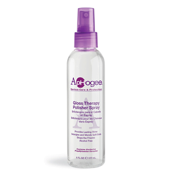 ApHogee Gloss Therapy Polisher Spray provides long lasting, healthy-looking, brilliant shine to even the most damaged hair. This amazing polish will smooth the hair surface to de-tangle and mend split ends, while also shielding hair against UV damage. It stops frizzy hair in its tracks! This polish works on all hair types.